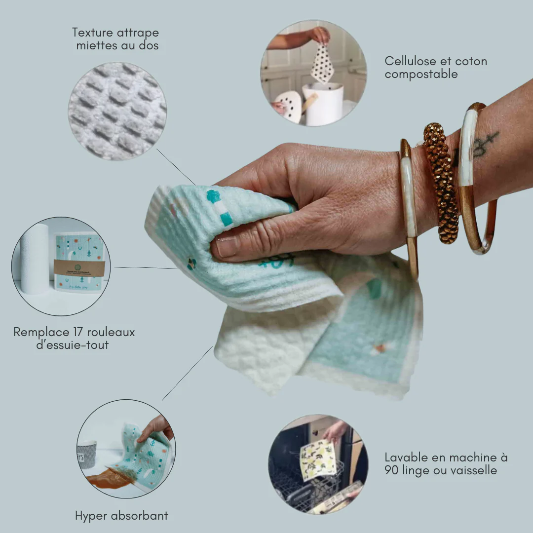 Avec ces éponges ultra absorbantes tu remplace l’essuie-tout sans perdre en praticité