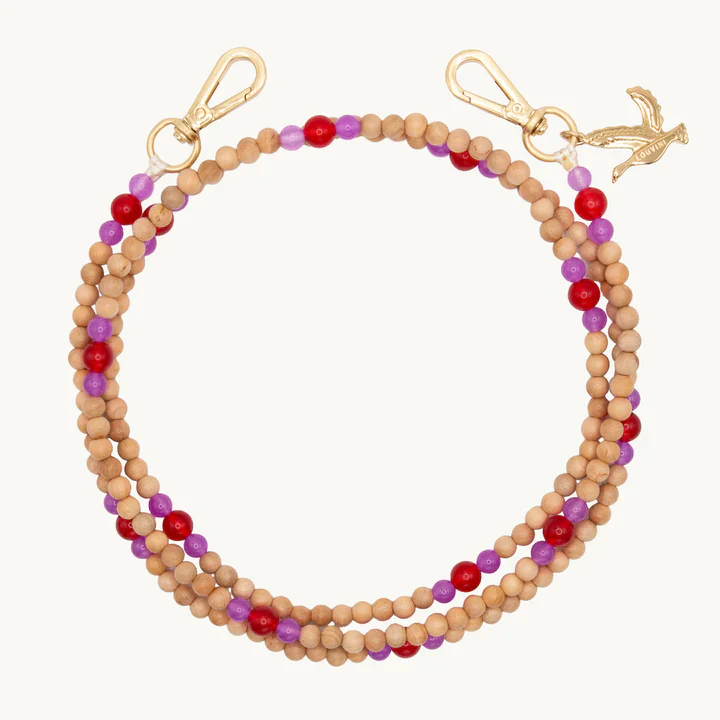 Bandoulière détachable en perles de bois avec deux mousquetons en métal doré Louvini.