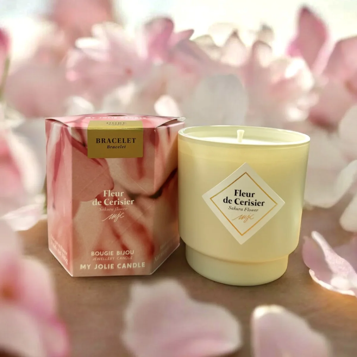 Bougie parfumée avec bracelet surprise à l’intérieur.