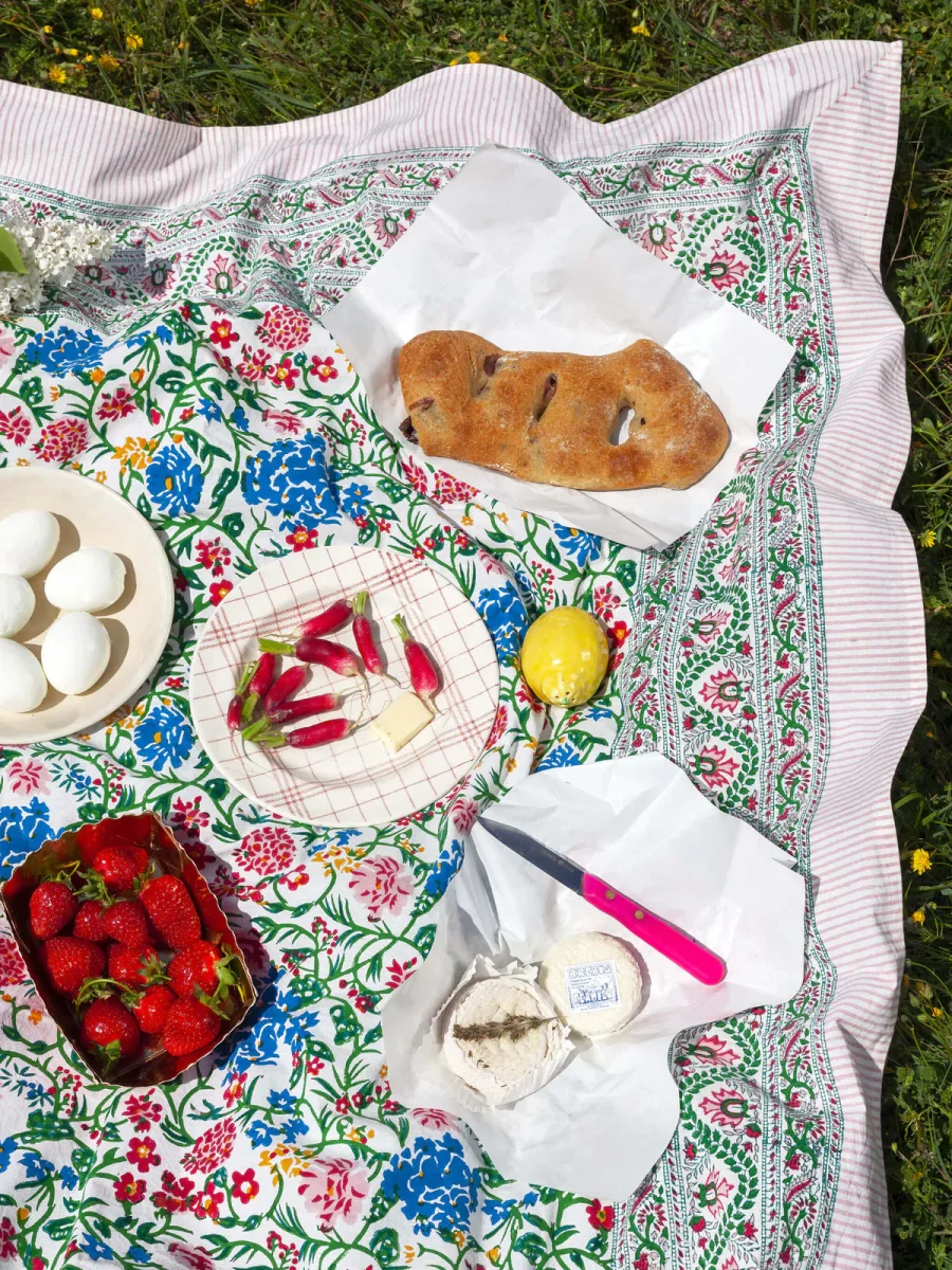 Lucas du Tertre – Nappe en coton imprimée Kerzon Sarong à la main selon la technique du block print.