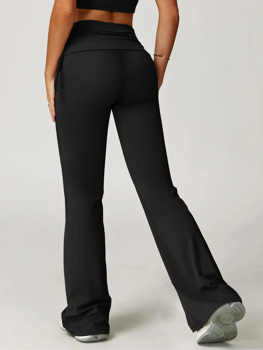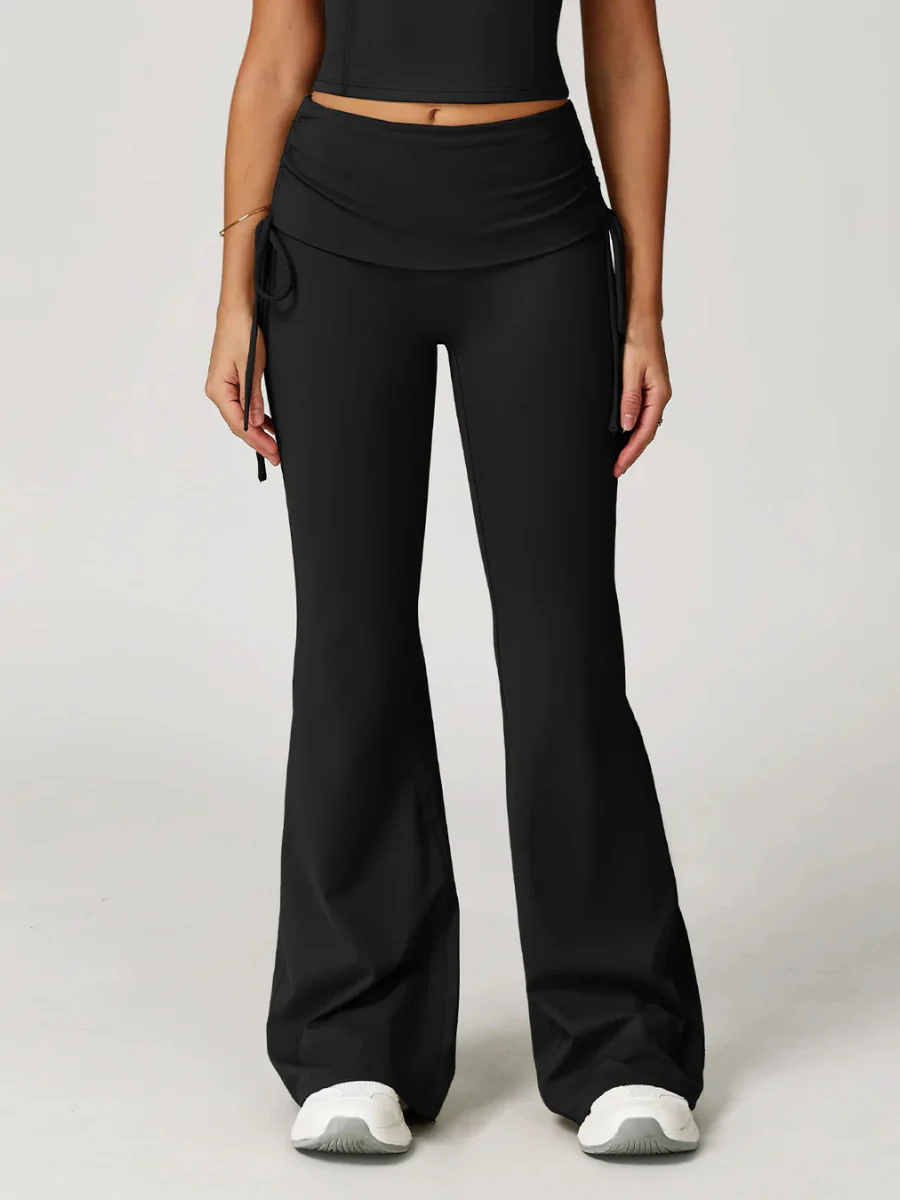 Ce pantalon de yoga se distingue par sa taille haute drapée et ses liens à nouer sur les hanches, qui soulignent la silhouette tout en offrant une touche de douceur et de fluidité. Sa coupe évasée allonge la jambe et crée une belle ligne, idéale pour bouger librement, du studio au quotidien. Conçu dans une matière légère, douce et extensible, il accompagne les mouvements sans jamais comprimer. Il peut être porté avec son débardeur assorti pour composer un ensemble à la fois élégant et confortable. Parfait pour celles qui aiment se sentir à l’aise tout en soignant leur allure, même entre deux postures de yoga.